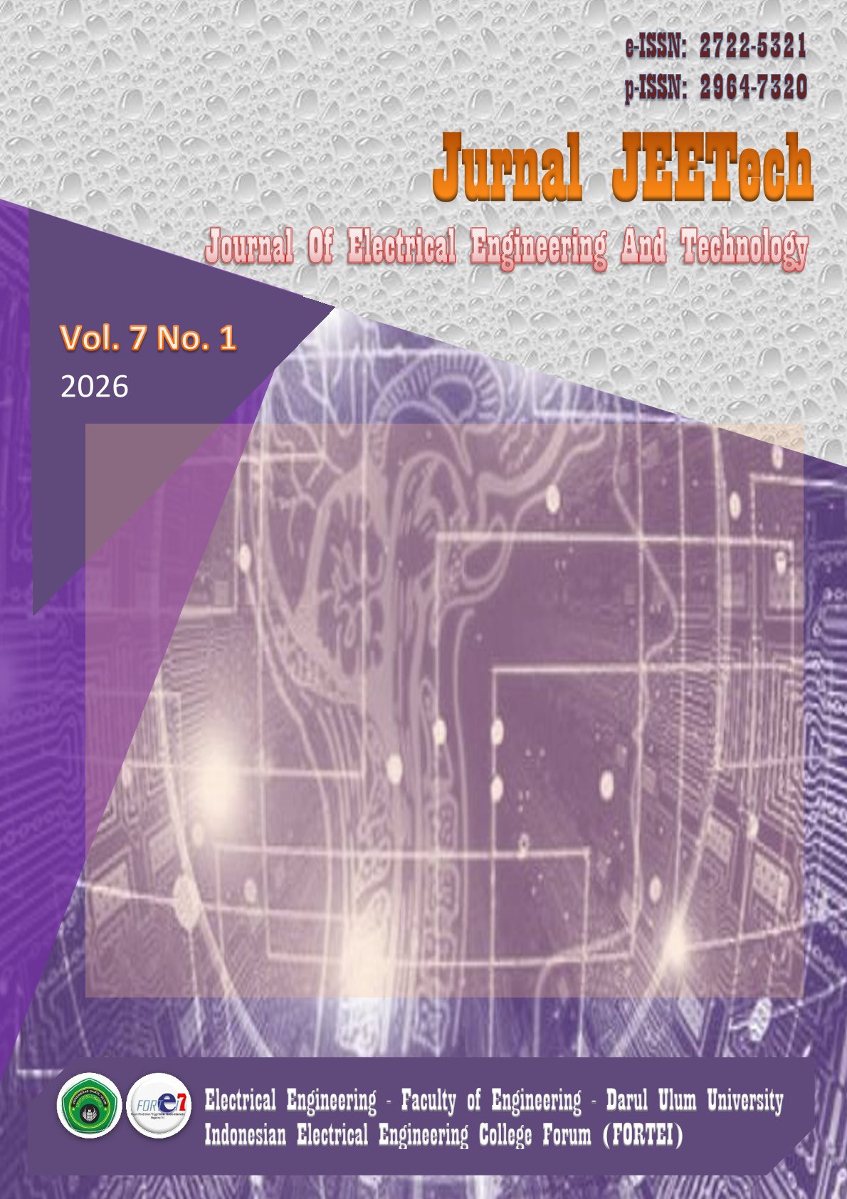 - Jurnal JEETech: Journal Of Electrical Engineering And Technology. Journal of Darul Ulum University Jombang in collaboration with the Faculty of Engineering, Darul Ulum University Jombang with the Indonesian Electrical Engineering Higher Education Forum (FORTEI). Region VII. East Java. This journal contains research results in the fields of Power Engineering, Telecommunication Engineering, Computer Engineering, Control and Computer Systems, Electronics, Information Technology, Informatics, Data and Software Engineering, Biomedical Engineering. All submitted articles must report original, previously unpublished, experimental or theoretical research results that are not published and are being considered for publication elsewhere. Submissions must be made online through the JEETech submission site.